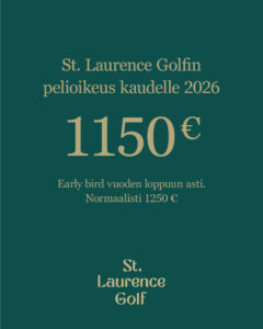 ST. LAURENCE GOLF TÄLLÄ VIIKOLLA LOPPUKAUDEN LÄHDÖT KALKKI-PETTERILLÄ 1. TIILTÄ Siirtosääntö voimassa molemmilla kentillä. AJANVARAUS JA CADDIEMASTER ajankohtaiset aukioloajat löytyvät kotisivultamme www.stlg.fi TOIMISTOPALVELUT ARKISIN 9-15 (tai erikseen sovittaessa muuna aikana)